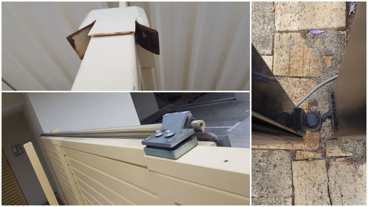 At times, tenants will unintentionally damage gates and attempt to repair or obscure the damage. Some unusual examples are people holding photo cellular covers together by blue tac or tape.